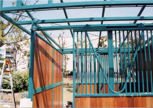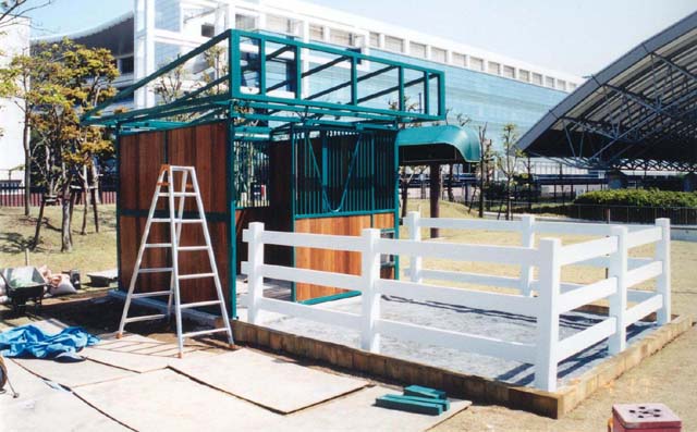 馬房パーティションを4面(前面/間仕切り/背面/側面)採用したケースです。