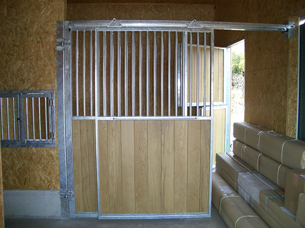 前面大扉+スライドドア。普段は大扉を閉じてスライドドアで利用できます。給仕用扉とダッジドアも設置。