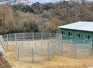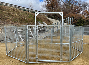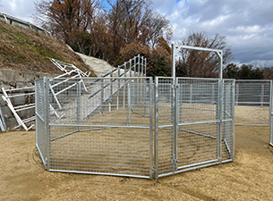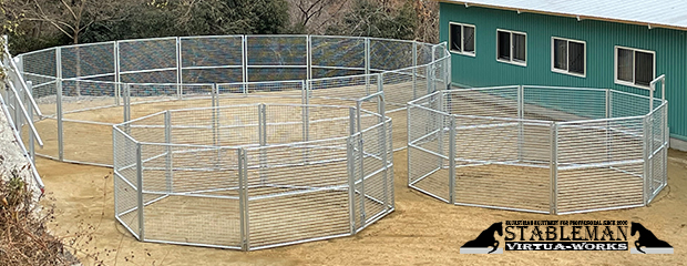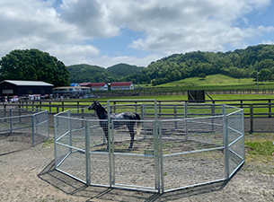 総網張りの競走馬仕様のラウンドペンです。