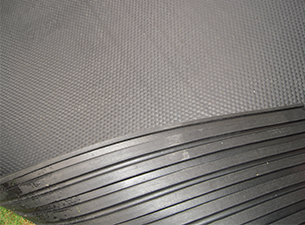 馬房内や蹄洗場付近に敷き詰めて使用します。馬匹の足が滑らないように表面にはエンボス加工、裏面には水の通り道が加工されています。
